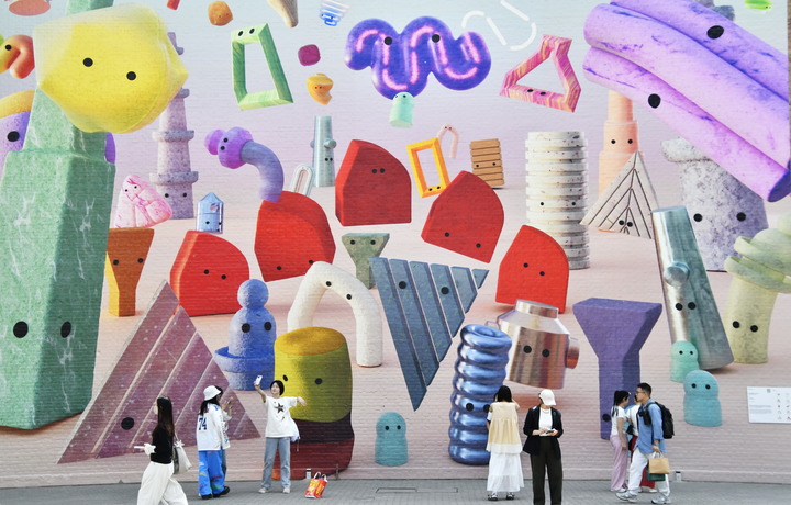 2025年5月4日,游客在798艺术区内游览。新华社记者 李欣 摄