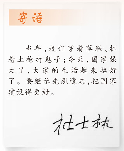 当年盼望的好日子已成为眼下的日常生活,杜士林满心欣慰更满怀期待,“好日子是战士们用鲜血换来的。我们要保持艰苦奋斗的精神,珍惜现在的美好生活。”杜士林说。