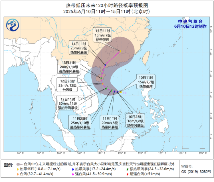 台风消息:南海热带低压可能于24小时内加强为今年第1号台风“蝴蝶”,逐渐向海南岛南部到广东西部一带沿海靠近,之后将于13日前后在上述沿海登陆(强热带风暴级到台风级,10~12级,25~33米/秒),登陆后强度逐渐减弱。目前时效尚远,未来演变和发展仍有不确定性,关注其对我市可能的风雨影响,气象部门将密切监测其动态,及时发布预报预警。