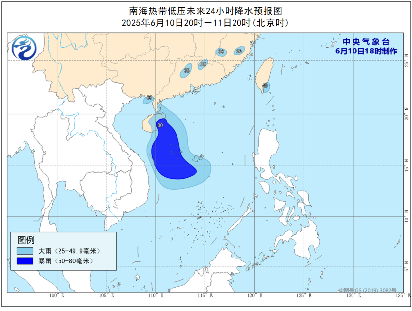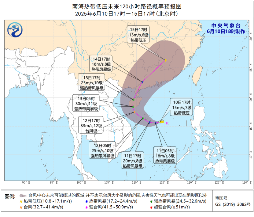 中央气象台6月10日18时继续发布热带低压预报: