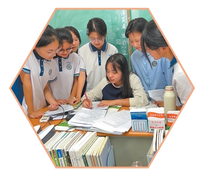 北京师范大学“优师计划”师范生张然(中)在实习时为学生讲解辅导。