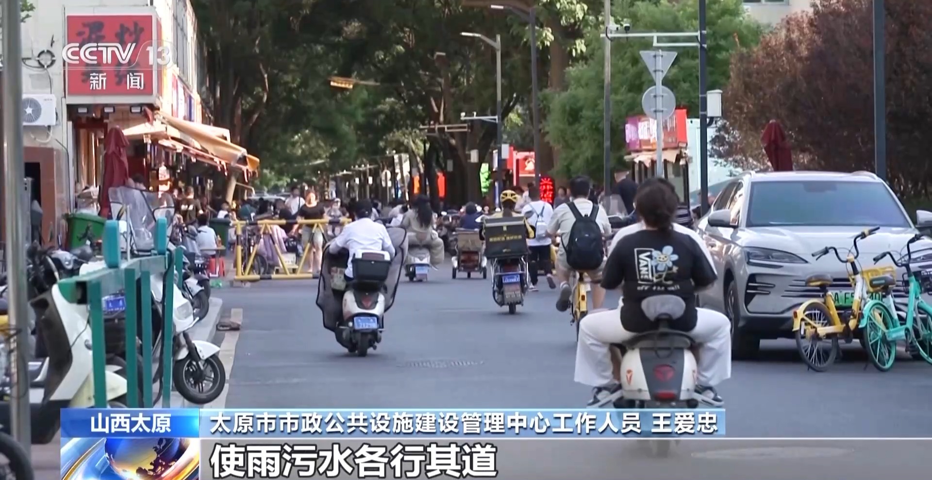 太原市市政公共设施建设管理中心工作人员 王爱忠:把原来的旧管进行拆除,增加了一套500毫米的污水管、600毫米的雨水管,使雨污水各行其道。道路的两侧各又铺设了一套收集污水的支线管,把各个商户两到三家集中一起,收集排入主管网。