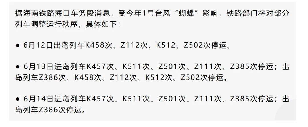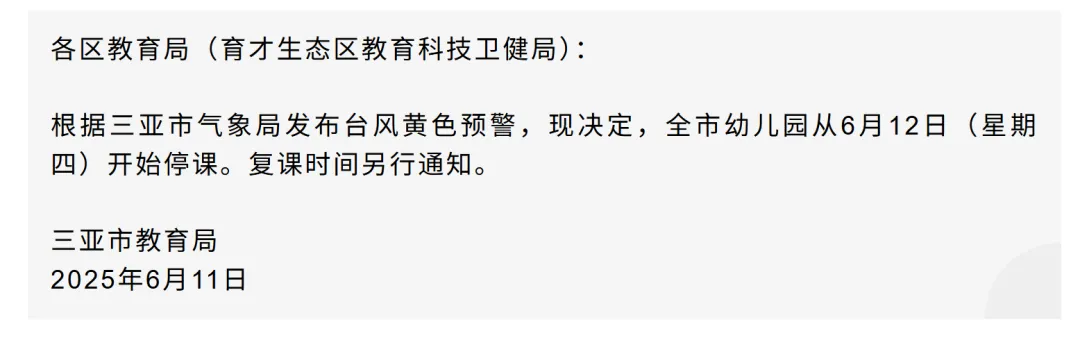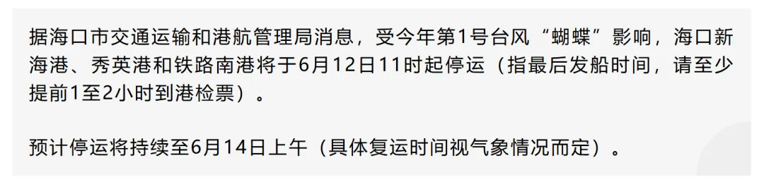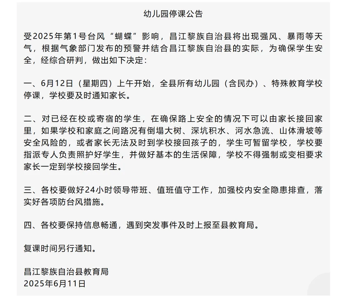 受今年第1号台风“蝴蝶”影响,海南三亚、东方、昌江、琼海、万宁、乐东、保亭、琼中、陵水等地,发布停课通知。