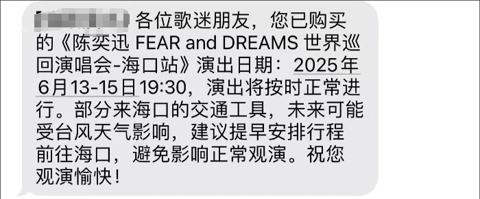 有网友表示此前还收到通知,正常举行演出,建议提早前往海口。