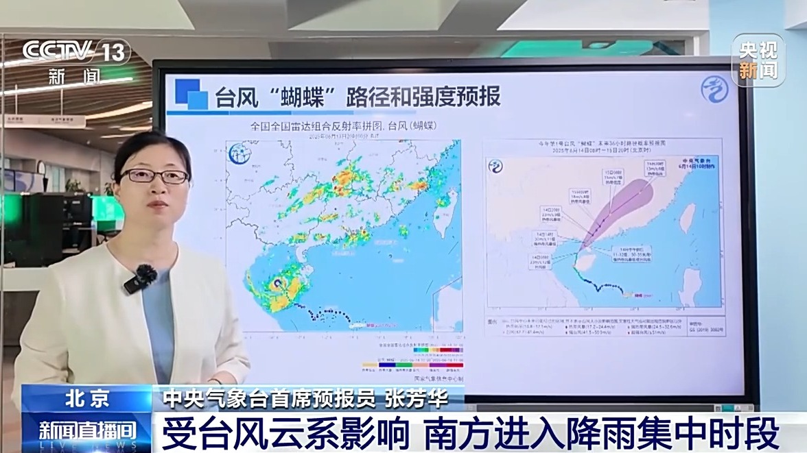 中央气象台首席预报员 张芳华:台风“蝴蝶”二次登陆后将快速向东北方向移动,今明两天将是它对华南江南影响的关键时段,特别是在广东西部、广西东部以及江西东北部、浙江西南部等地累计降雨量大。公众需警惕次生灾害,避免前往山区等灾害易发区。