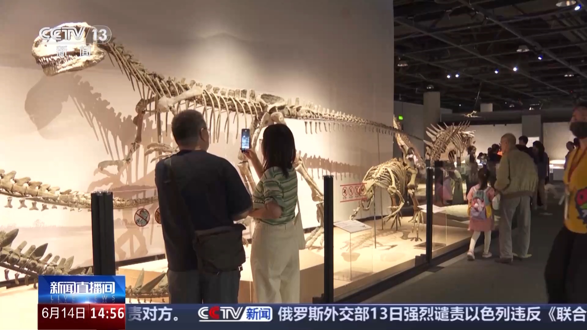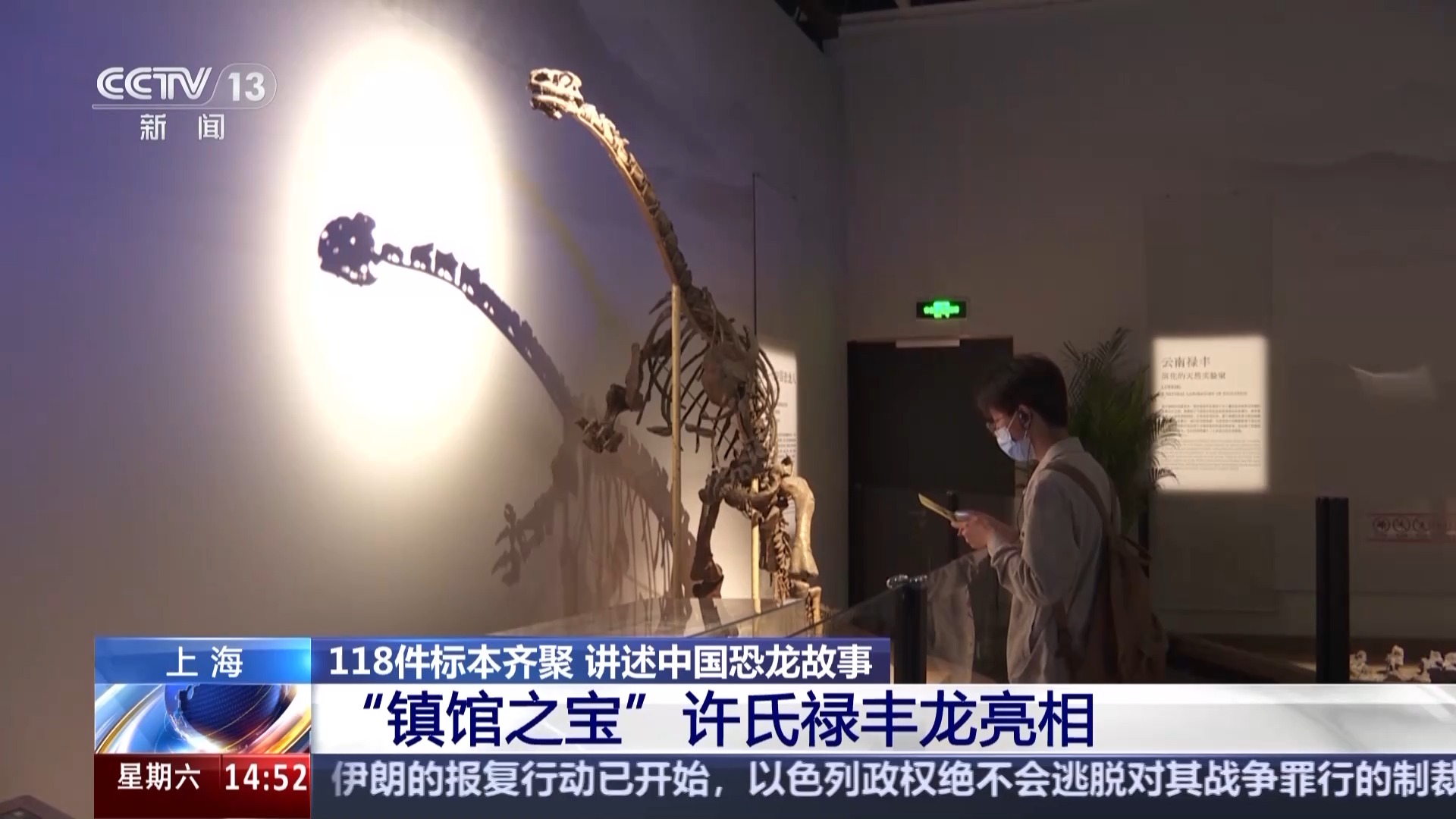 总台记者 窦筠韵:在我身后的这条龙是此次恐龙大展的镇馆之宝,它是中国人首次发现、发掘、装架并且进行展示完成全过程的(恐)龙。奠定了中国古生物学研究在国际上的地位。