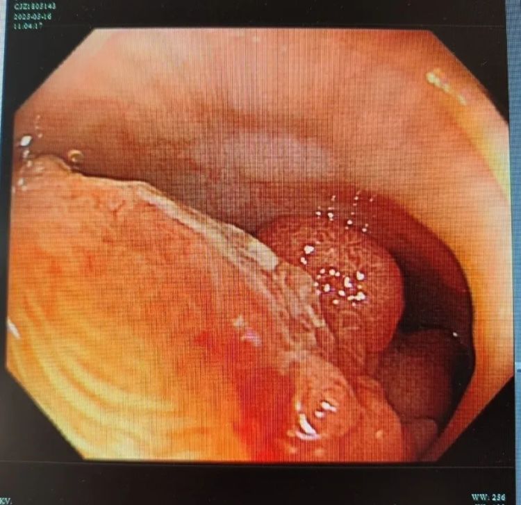 "7x4cm的息肉几乎堵塞了整个肠腔,长得跟一串紫葡萄似的。"