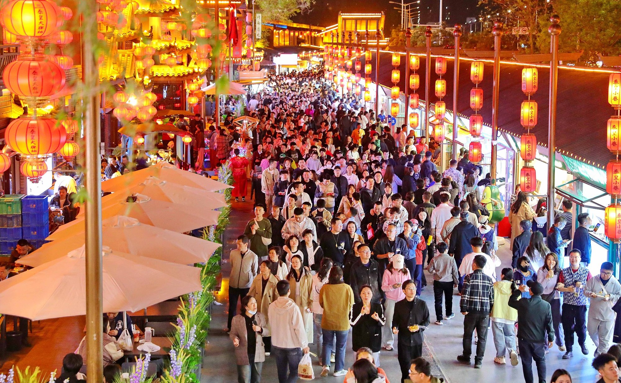 河北秦皇岛,“五一”假期,游客在海港区秦皇小巷游玩。