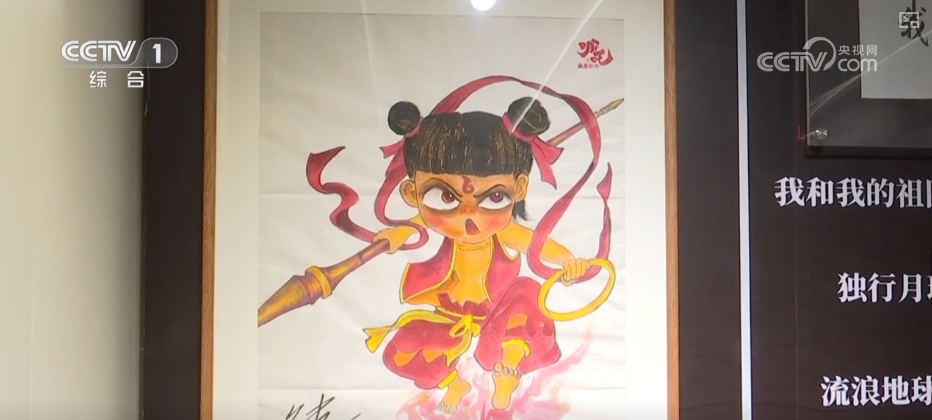 这是西安电影制片厂资料馆馆藏的电影《红高粱》的获奖证书,这张则是动画系列电影《哪吒》的导演饺子的手绘哪吒画像。