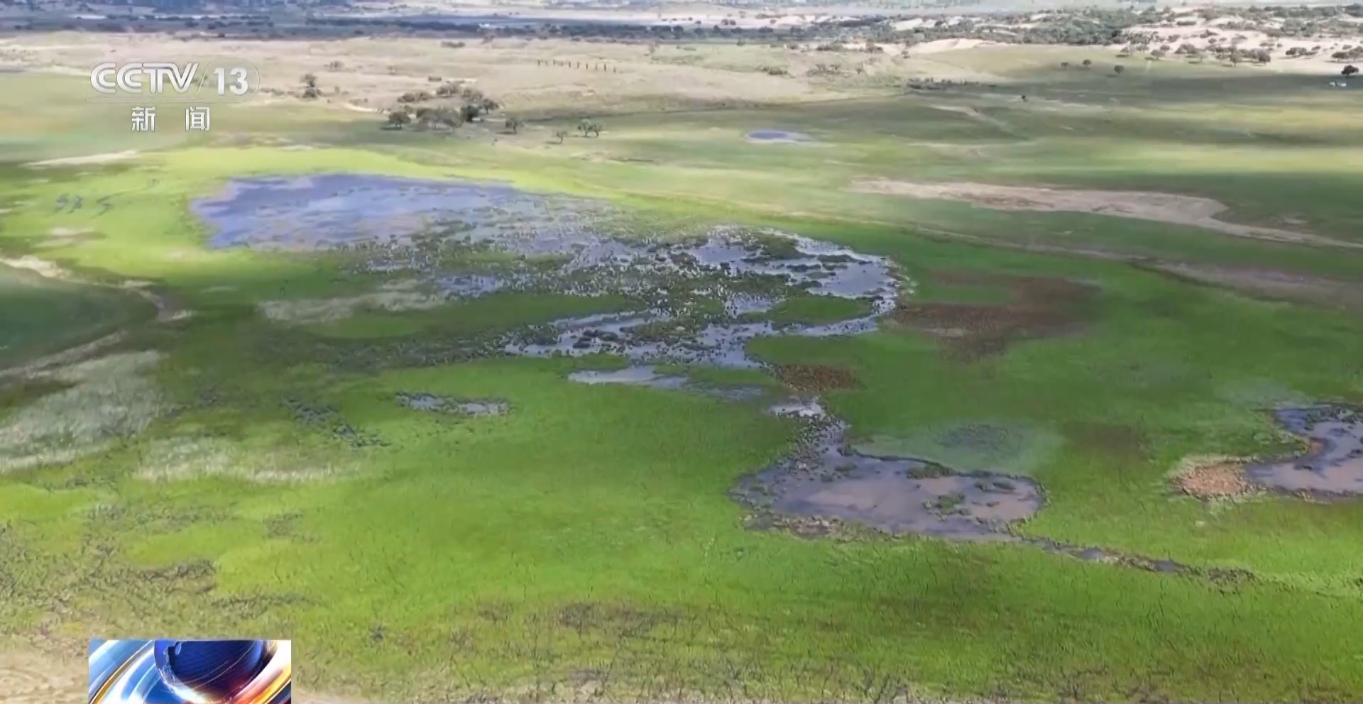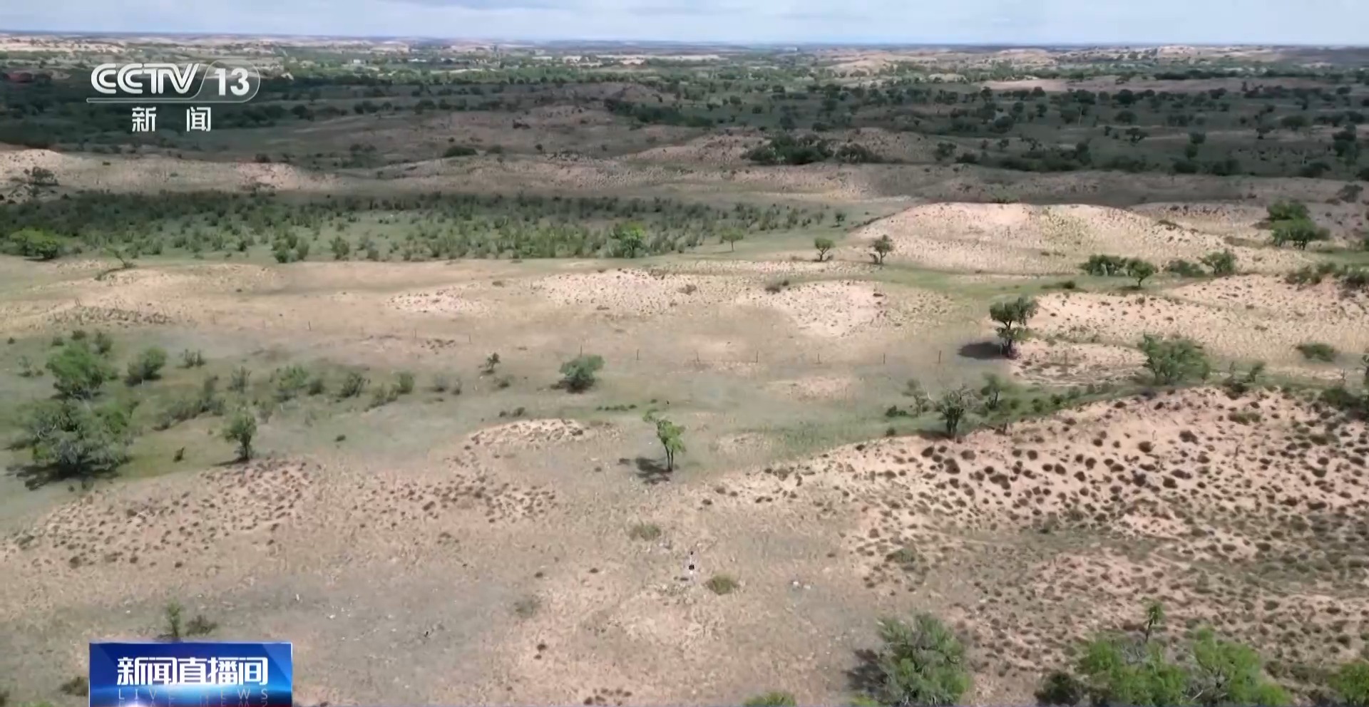 总台记者 张敏:这里是内蒙古正蓝旗周边的一片草地,看起来水草丰美,可就在它美丽的外表之下,却都是这样摸起来非常粗糙的沙子,一旦地表的植被遭到破坏,草场就很容易退化。将我们的视线移向远方那片沙地,就是科学家正在研究“二六二”比例的地方。