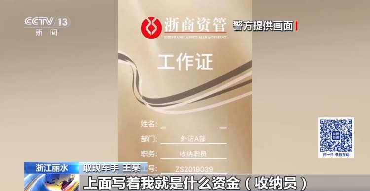 取现车手 王某:他给我们整了一个工作证,上面写着我是资金收纳员。交易的地点是我们到了附近自己来选,选比较安全的,没有监控的,上线会让我们戴着口罩,戴着帽子,背着书包去见客户。