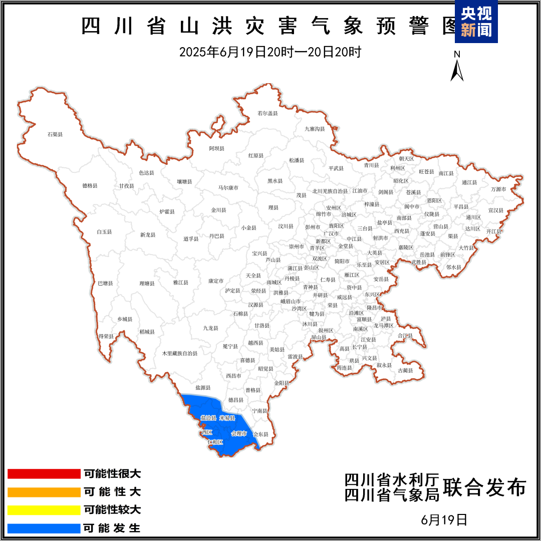 此外,四川省水利厅发布山洪灾害蓝色预警:2025年6月19日20时至20日20时,攀枝花市西区、仁和、东区、盐边、米易,凉山州会理、会东、盐源等8个县(市、区)可能发生山洪灾害。(总台记者 庞丁 樊承志)