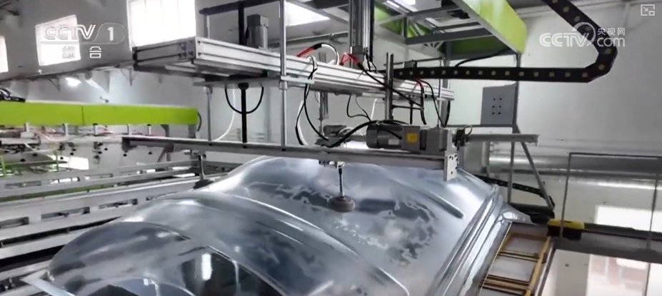 企业负责人梁峰华介绍,这个是他们2025年推出的新款,弧形设计针对外国人使用,站在这里比较高,不容易碰头。这个材质是PC材质,警用的防暴盾牌也是这种材质,包括飞机上侧面玻璃也是这个。