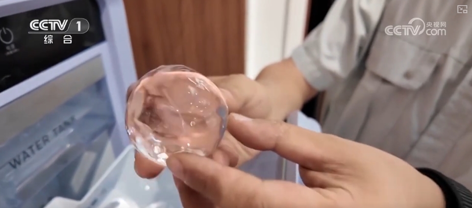 陈刚介绍,这是全球首台台上式的球冰机。球冰是所有的冰种当中最难做的,要把它做透做圆是一个很大的挑战。有一些全球的头部企业他们研究了10年还没研究出来,他们自己也研究了四五年。创新对于他们这种制造型企业来讲是必由之路。