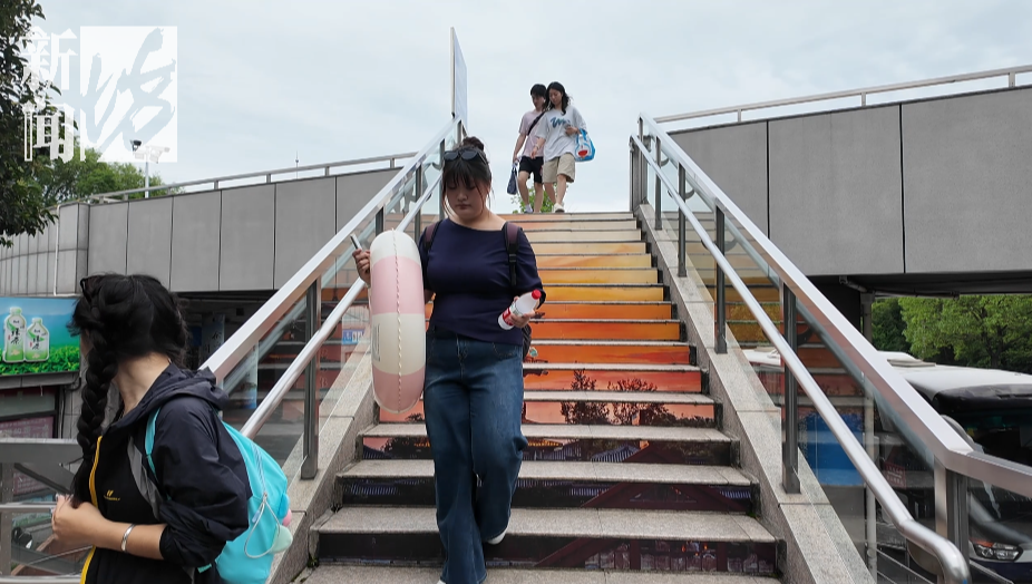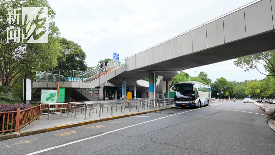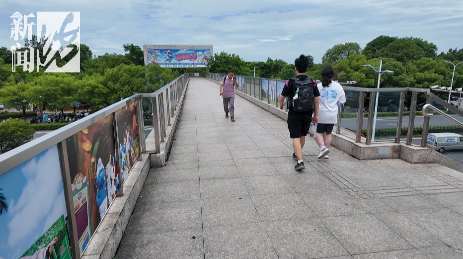 记者注意到,天桥的高度几乎有两层楼高,有数十级台阶,还要拐两个弯,从轨交站到乐园巴士站,如果搭乘自动扶梯,游客们换乘时既方便又省力。眼下马上又到了暑期游园高峰,游客们希望能及早启用自动扶梯。