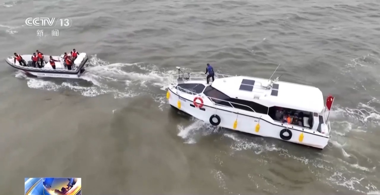 连云港海警局执法员 毛国庆:经过现场研判,我们认为这艘失控游艇距离堤坝较近,附近暗礁多且水深不够,大型执法艇难以靠近,我们决定立即下放小艇前往救援。