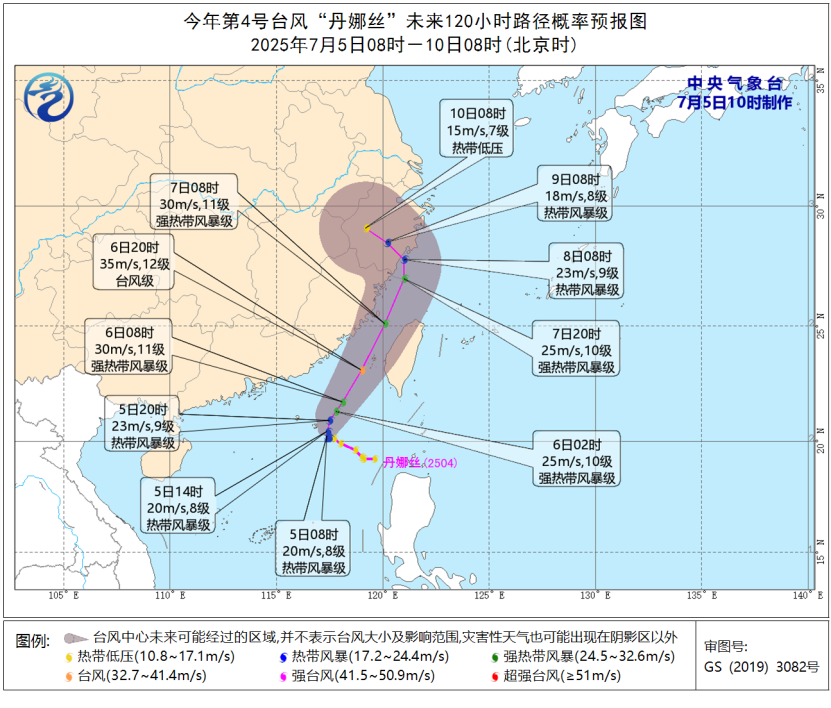 “丹娜丝”将穿行台湾海峡,给东南沿海部分地区带来强风雨天气,尤其是福建、浙江等地台风暴雨次生灾害和大风灾害风险较高。目前正值暑假,相关区域游客及当地居民需提高警惕,注意出行安全。