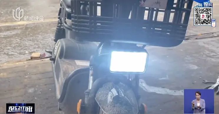 记者走访周边多家外卖配送站点时注意到,不少外卖骑手的电动车上,都安装着这类大灯。