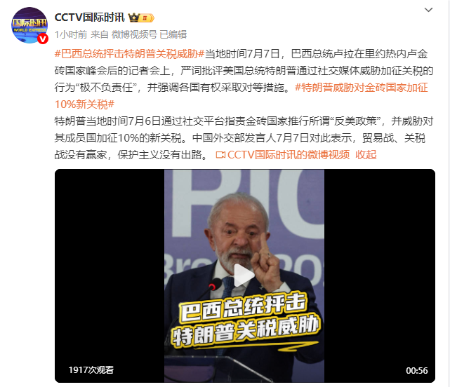 当地时间7月7日,巴西总统卢拉在里约热内卢金砖国家峰会后的记者会上,严词批评美国总统特朗普通过社交媒体威胁加征关税的行为“极不负责任”,并强调各国有权采取对等措施。