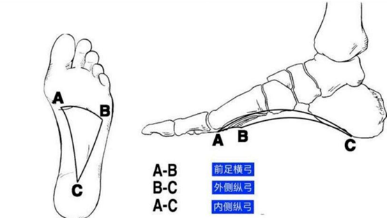 正常发育完全的内侧纵弓曲度大、弹性强,就像一个小型减震器。我们每走一步、跳一下,它都能缓冲来自全身骨骼和关节的压力,让脚部能给身体提供足够的稳定支撑,我们才能跑跑跳跳无压力。