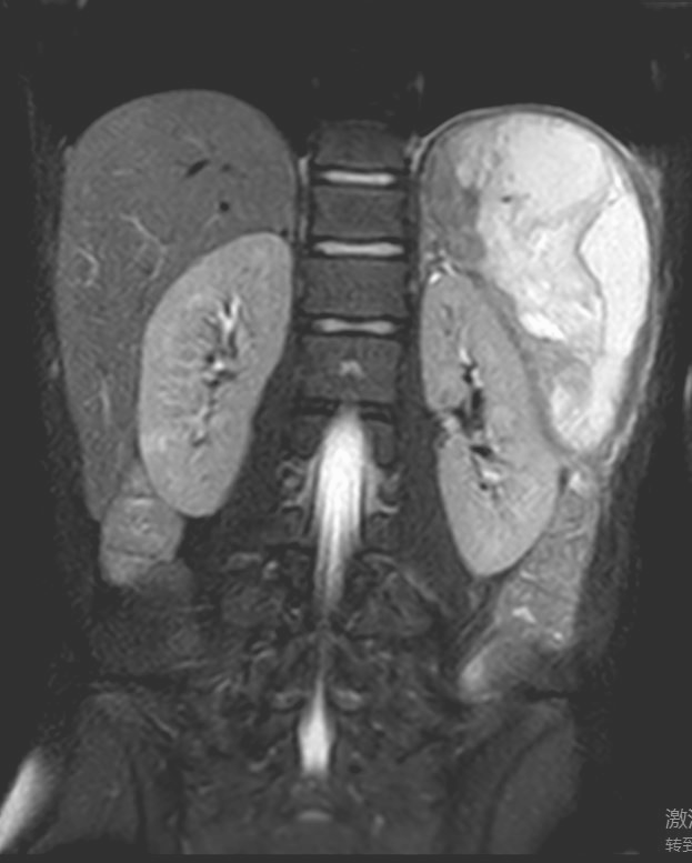 普外科接诊后,副主任医师胡明结合外院CT与本院MRI检查结果,明确诊断为“脾坏死液化伴积气积脓” (范围约152.6mm*102.5mm*58mm)。