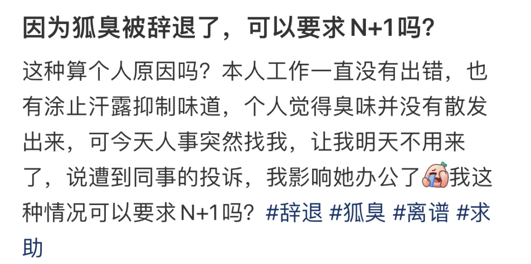 一则"因狐臭被公司辞退"