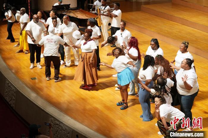 7月14日,2025年“鼓岭缘”中美青少年合唱周交流演出在北京中山公园音乐堂举行。图为美国风声合唱团演唱《祝福(Congratulations)》。中新社记者 王紫儒 摄