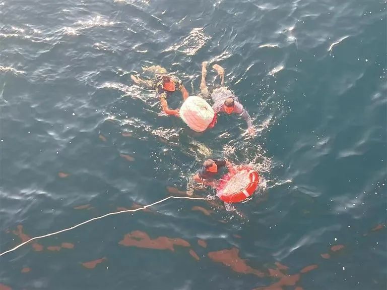“他们不停地问还有没有其他人,又递救生圈又扶软梯。我当时累得说不出话,只知道自己遇到好人了。”获救者陈先生哽咽道。