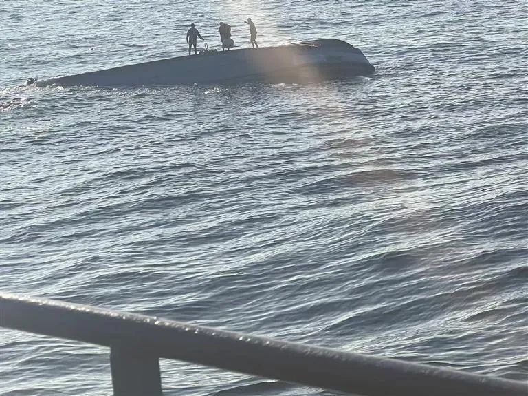 “立即报告船长!立即报告海事!”清晨的海雾尚未散尽,驾驶台内的雷达屏幕闪烁着微光。正在值班的大副张朝坤目光扫过海面,突然定格在左前方约2海里处——一艘小型船舶已然倾覆,船体倒扣在波峰浪谷间,3名浑身湿透的遇险者站在冰凉的船壳上,高举双臂拼命挥舞。