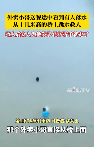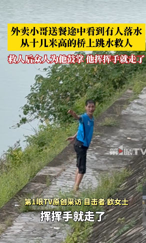 7月19日,目击者黄先生和欧女士告诉记者,此事发生于18日下午,事发地点为广东茂名高州观山公园附近,她到达现场时,外卖小哥已经跳进河里在救人,“桥面离水面还是很高的,可能有十几米,水流也比较急,他想都没想就直接跳下去了。”欧女士介绍,后来民警将外卖员和落水者拉上了岸,而外卖员就摆摆手就离开了“我还有餐没有送”。