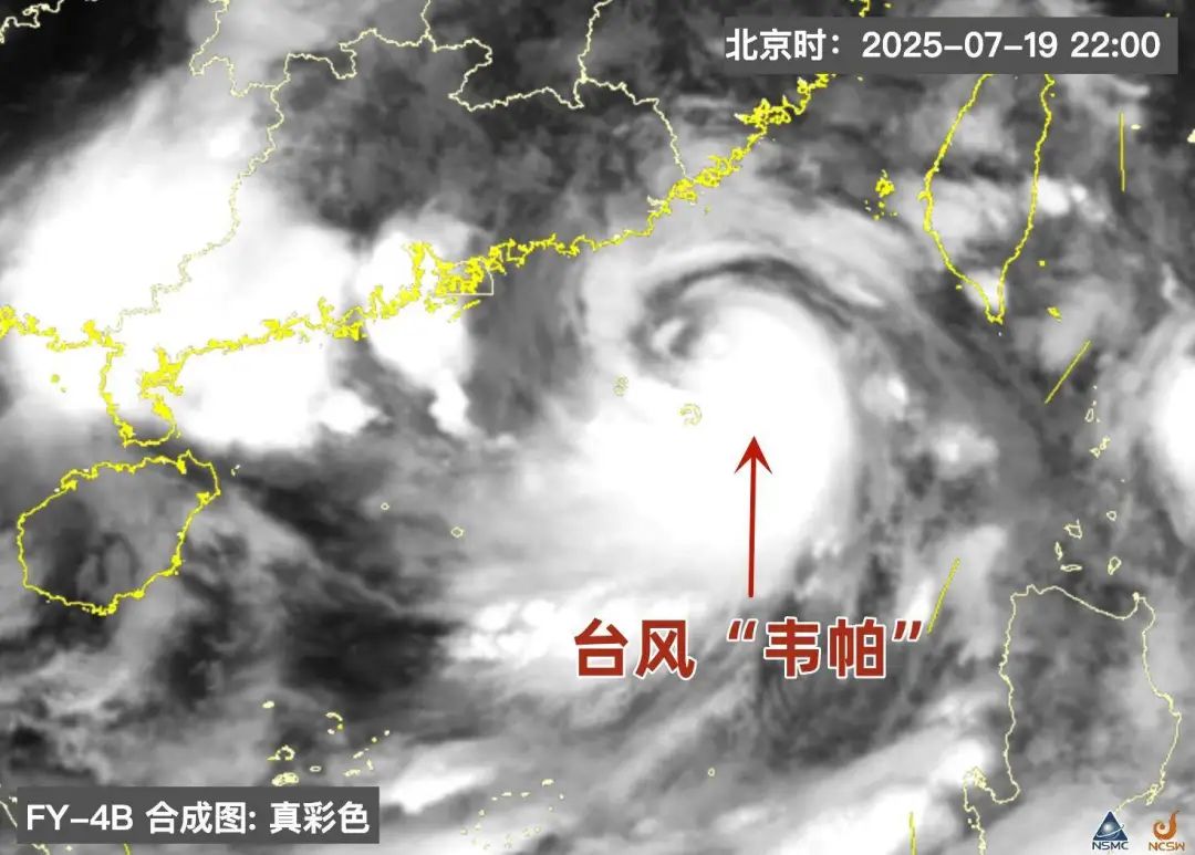 7月19日22时,台风“韦帕”卫星影像 国家卫星气象中心风云四号卫星天气应用平台截图