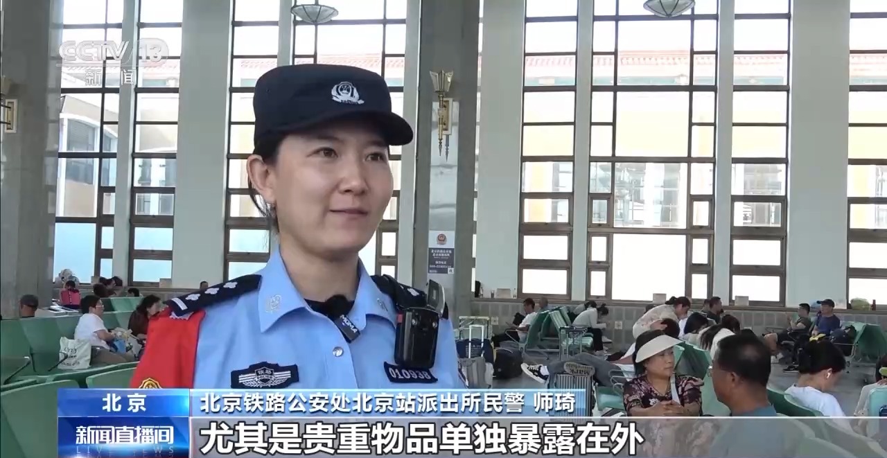北京铁路公安处北京站派出所民警 陈晨:发现物品被盗后,仔细回忆物品被盗前后的细节,如是否注意到周围有可疑人员、是否有异常的声响或动静、被盗物品最后出现的位置等,尽可能为民警提供有效的线索,以便民警能快速开展工作。