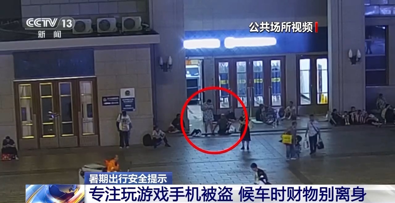 北京铁路公安处北京站派出所民警 陈晨:在广场上睡觉的旅客,无法对自己携带的行李物品进行有效的看管,还有的旅客由于比较劳累,躺在地上玩手机的时候,把手机往身边一甩就睡着了,而且由于处于熟睡状态,根本无法感知身边的异常行为,容易给盗窃分子可乘之机。