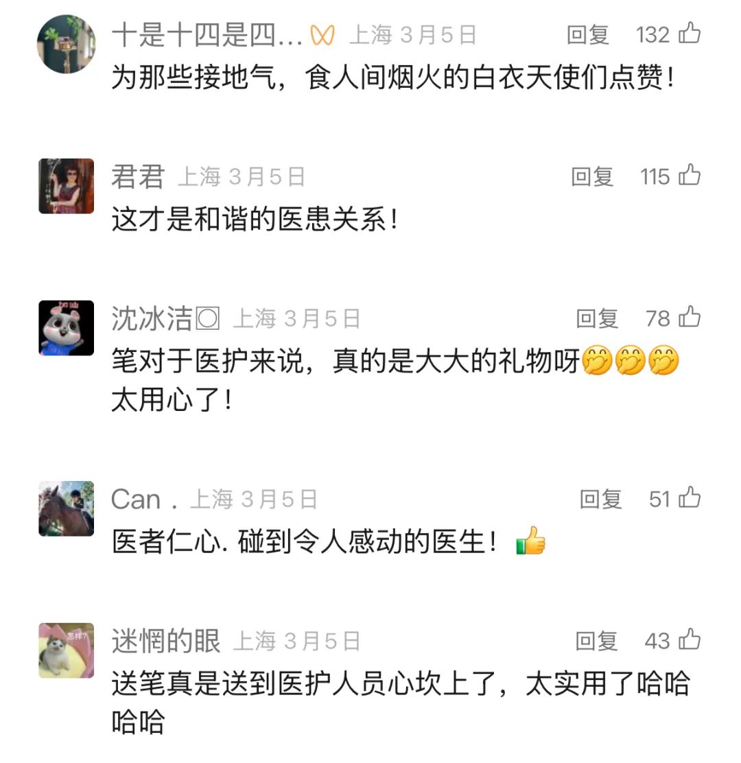 如果收下来呢,是我们违反了工作纪律,不收又辜负了患者的一片心意,我们也是很想让这份心意继续传承下去,所以我们支部书记就买下了这些笔,然后再转送给我们的医务工作者。