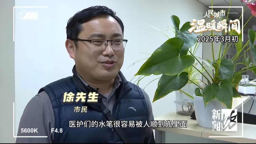 原来,这位男士是几个月前曾在此住院的徐先生。他说,住院期间,受到了医护人员非常好的救治,总想为他们做些什么。细心的徐先生发现,医护们的笔经常遗失,于是决定送一些给他们。