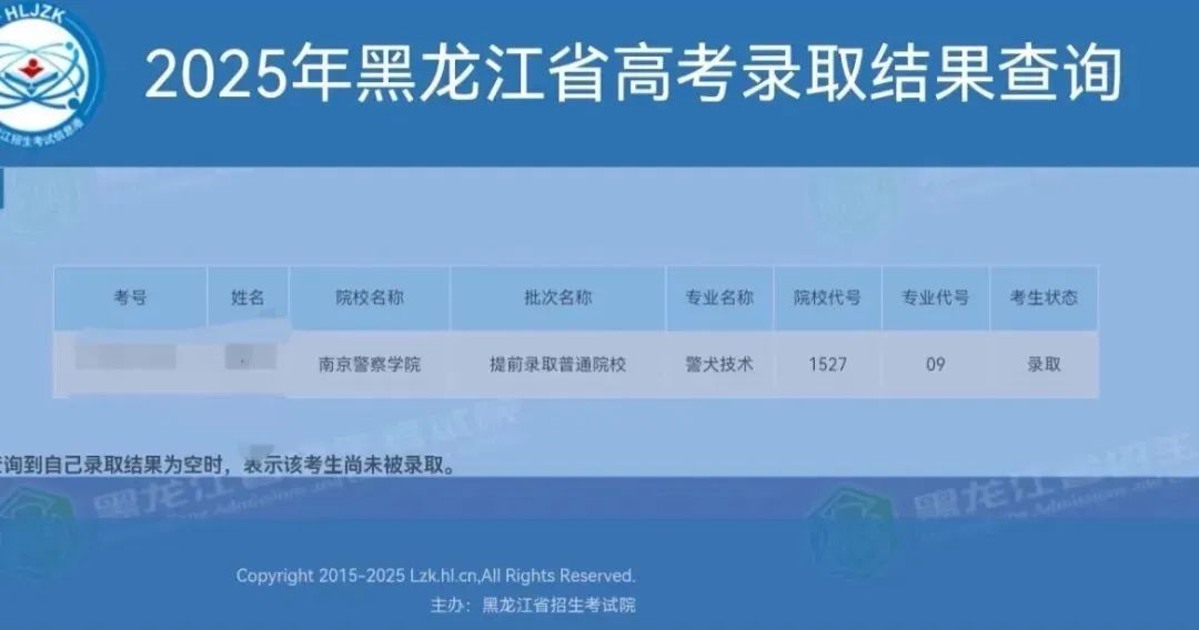 “警犬技术”专业录取的截图