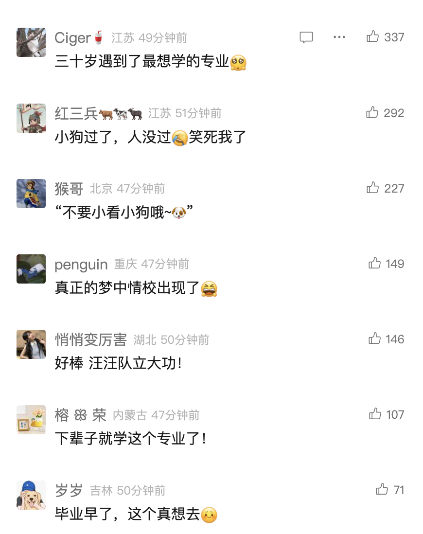有“警犬技术”专业的同学分享,“没想到解剖课这么硬核,连狗狗的每一块肌肉都要背熟”,“成为了半个兽医和半个警察”。