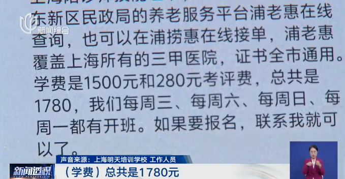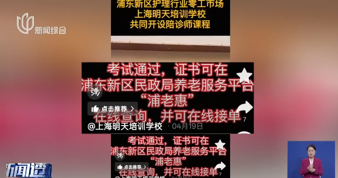 记者在他们的多个官方账号上,都看到有"持证学员可在浦老惠、安老护颐等平台在线接单"的介绍。