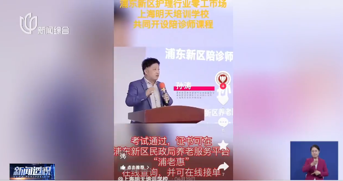 对方介绍,明天学校,确实是区里认可的试点培训机构,已开办了二十多期学员班,共计约1000人参与了培训。目前,全市的陪诊试点,还是以培训养老服务机构的从业人员为主,基本不面向社会人员。而浦东新区是先于全市率先探索,接受社会人员报考陪诊师,但目前看,实际的陪诊单量还不足以满足如此大批量完成考证的陪诊师。