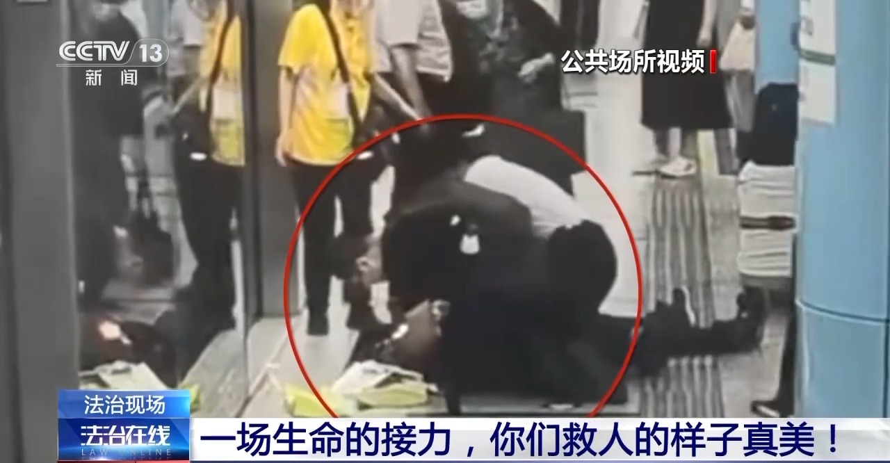 7月17日早高峰,在北京地铁4号线上一位老人突发疾病晕倒了。就在这紧急的时刻,有的人自发跪地,轮流为老人进行胸外按压;有的人在站台上飞奔,传递着急救设备,一场紧张的生死救援迅速展开。