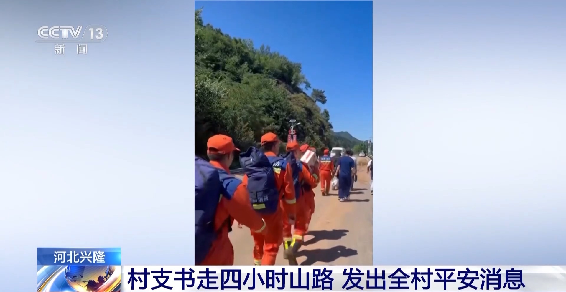 兴隆县六道河镇小关门村党支部书记兼村委会主任 赵伟:我是7点多出去的,11点半走到密云大城子镇了,才找到有信号。出去第一我先想跟书记镇长联系一下,报我们村没有出现人员伤亡。第二就是联系我们在外边的家属,报个平安。有好多人给我打电话,家属想往家里边送水、送吃的。