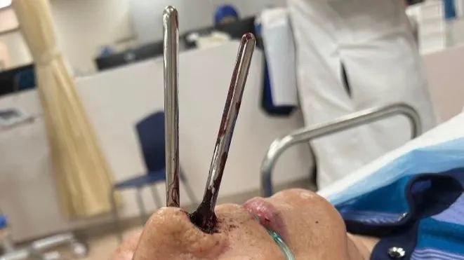 当地医院CT显示,铁筷穿透鼻窦骨质,尖端戳破中央颅底,该区域毗邻多个重要神经血管,贸然拔出风险极高,故转至上海六院。