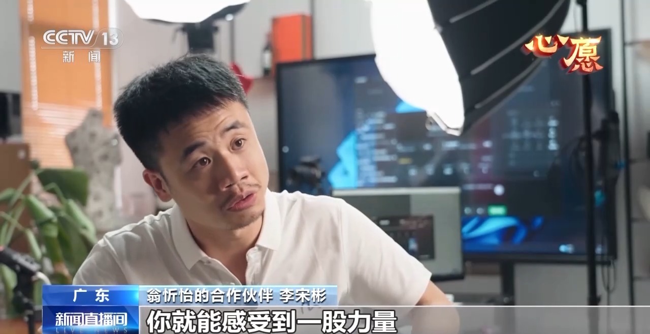 今年5月20日,翁忻怡参加第十一届广西残疾人艺术会演,她用自己克服困难、重获新生并努力创业的经历,倡导残健融合,激励更多的残障朋友自信自强、奋力逐光。日前,总台记者来到广东,在广州市番禺区誉山智创园一家公司,见到了正在协助合作伙伴开展新媒体直播的翁忻怡。说起搭档小翁,合作伙伴李宋彬频频竖起大拇指。