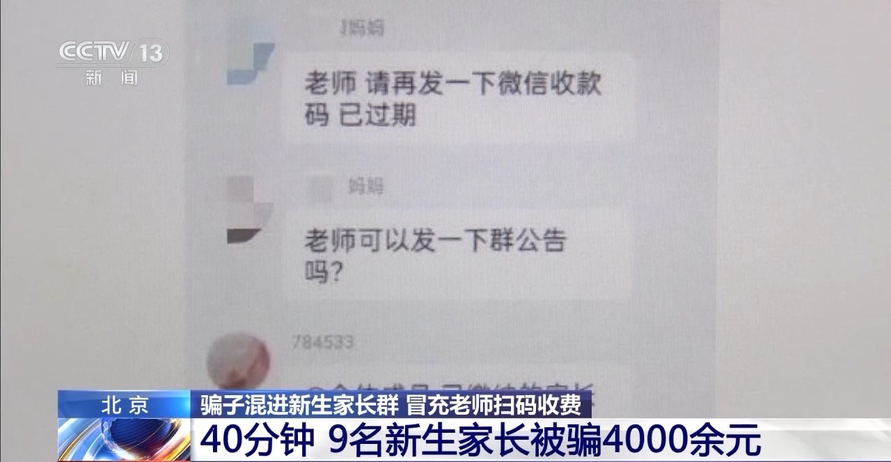 北京:骗子混进新生家长群 冒充老师扫码收费