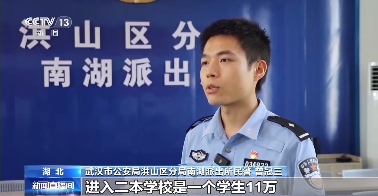 武汉市公安局洪山区分局南湖派出所民警 曾冠三:(嫌疑人)说可以把学生通过国际生的方式,置换到国内高校。以统招生身份入学,毕业后可以拿到学位证(和)学历证。