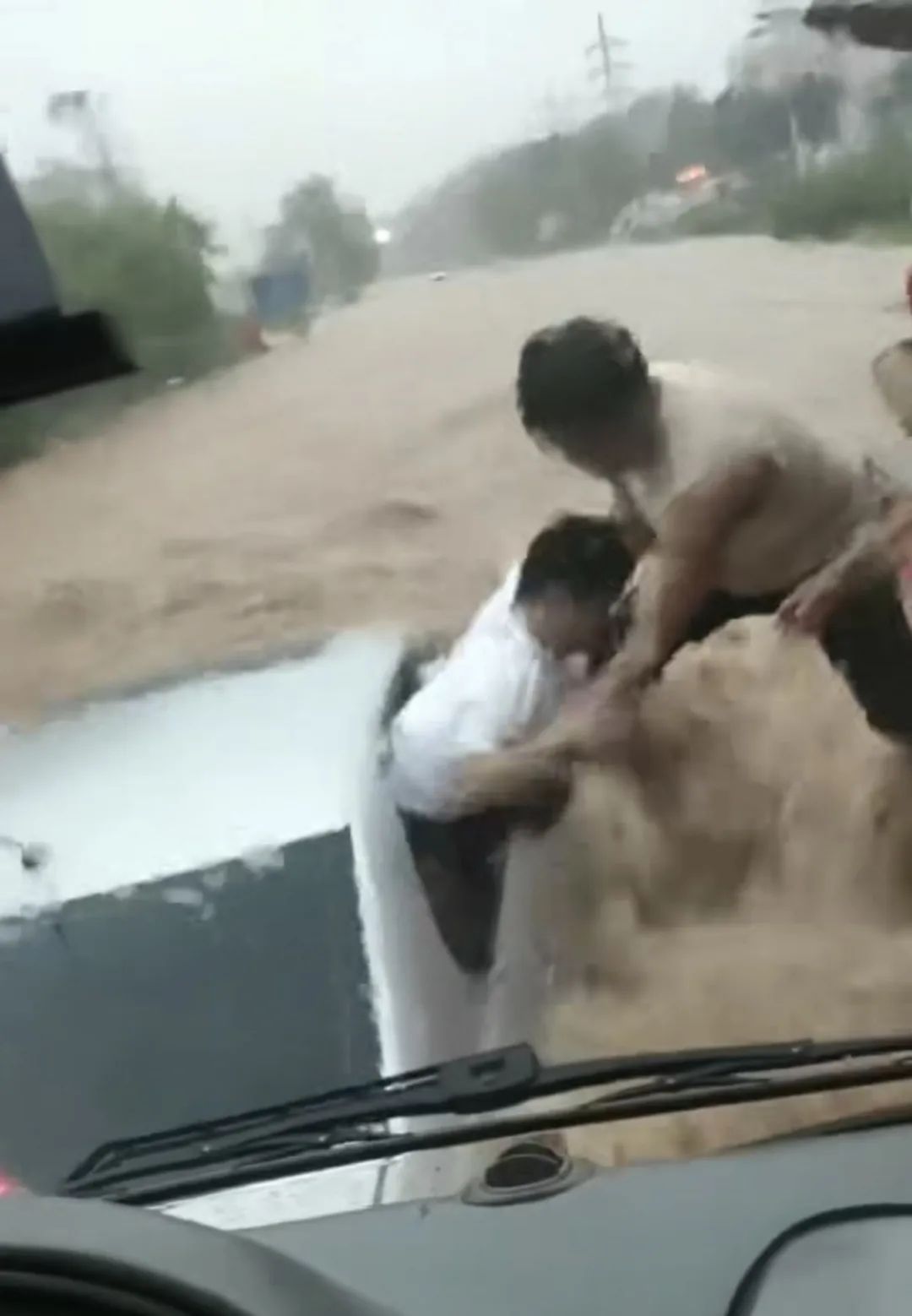 “车主说,车窗因进水失灵,根本打不开。”吴绪乾说,“幸好当时小轿车后边正好跟了一辆大巴车,大巴车司机把小轿车稳稳地顶住,否则小轿车被洪水冲入旁边的水沟中将很难救援。”