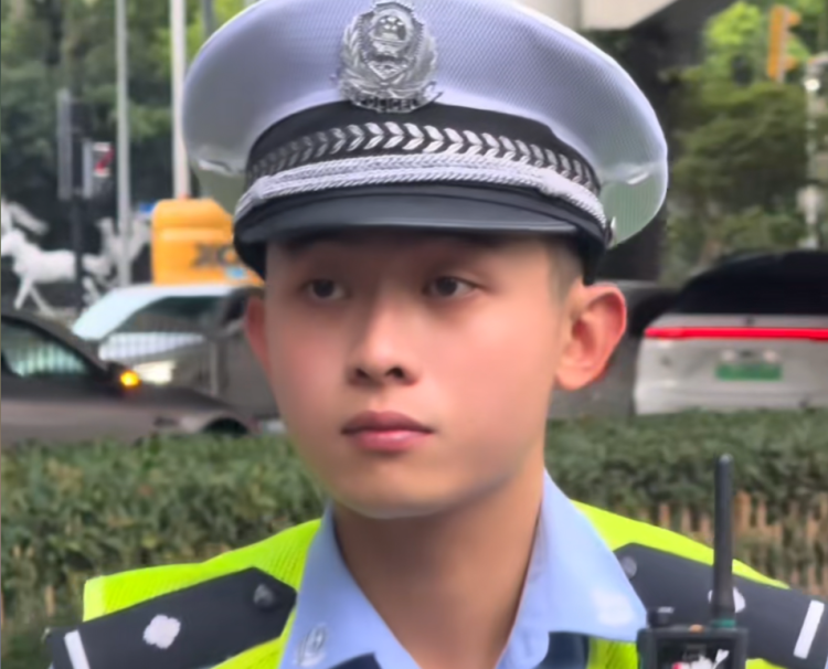 这位帅气的交警被网友称为“卷卷警官”