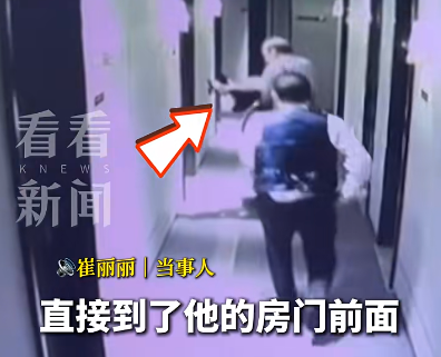 崔丽丽表示,当时董事长抱着她走在保安前面,并且直接走到他的房门前,并命令保安把他的房门打开。
