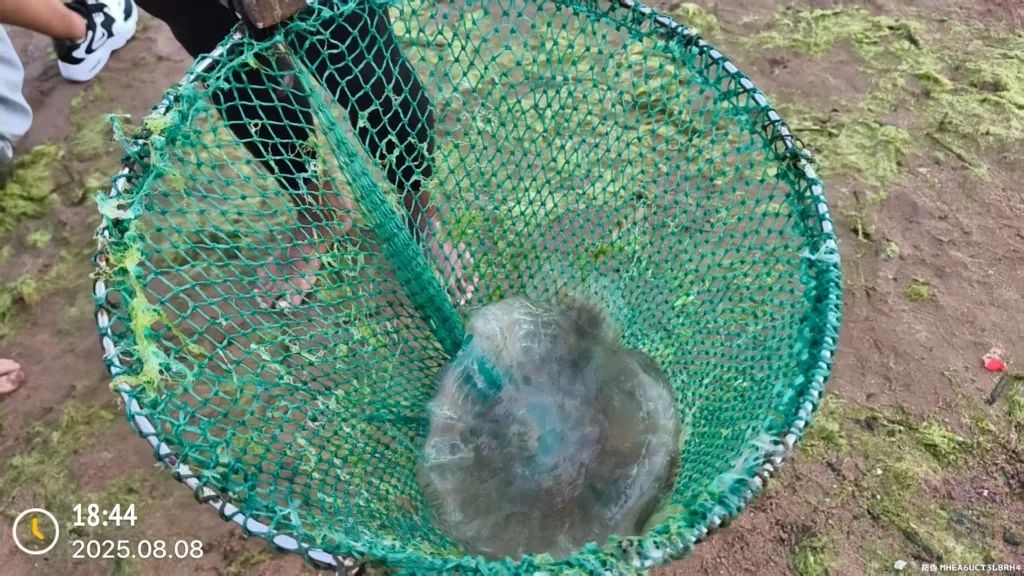 目前,各海水浴场外侧已增设防护网,多数海蜇被阻挡在外。但受海浪冲击影响,仍有不少海蜇触须漂入浴场区域。“这些触须同样带有毒性,两三米范围内都可能造成接触伤害。” 翟涛强调,由于个体体质差异,被蜇后的反应也各不相同,轻则局部红肿,重则出现大面积肿胀,严重时甚至可能引发休克。