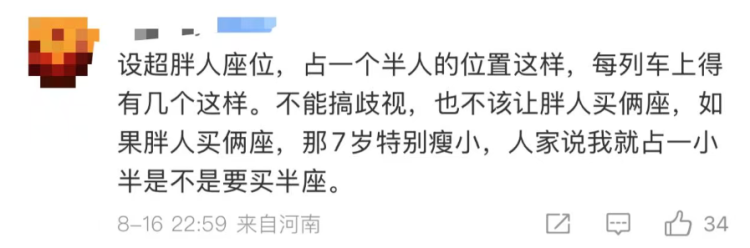 认为二等座售票应兼顾体型因素